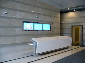 在大堂前廳的服務(wù)臺(tái)處及入口兩側(cè)分別設(shè)置信息發(fā)布點(diǎn)、實(shí)時(shí)地發(fā)布接待歡迎詞、會(huì)議信息、樓宇宣傳片、來(lái)訪重要客戶(hù)宣傳片、各類(lèi)通知、分布圖以及各類(lèi)生活信息如全國(guó)天氣、外幣匯率、安全常識(shí)等重要信息,不僅在一定程度上可以提高自身檔次,還可以起到安全隱患消除作用。