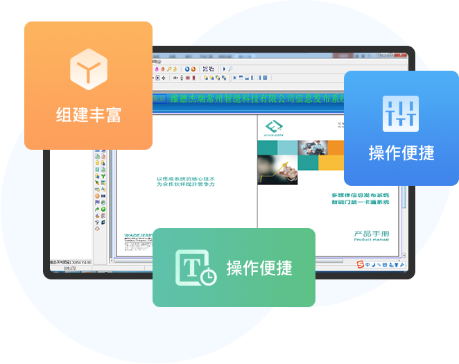 維德杰瑞多媒體信息發(fā)布系統(tǒng)”是基于TCP/IP網(wǎng)絡(luò)結(jié)構(gòu)下,?C/S結(jié)構(gòu)。在無(wú)人干預(yù)的情況下,以信息輸出播放為目的,以信息發(fā)布傳遞為主導(dǎo)的軟件系統(tǒng)。該系統(tǒng)提供功能強(qiáng)大的信息編輯、傳輸、發(fā)布和管理等專(zhuān)業(yè)服務(wù)。它可以將文本,圖片,動(dòng)畫(huà),視頻,音頻等多媒體信息編輯后有機(jī)組合,通過(guò)網(wǎng)絡(luò)平臺(tái)傳輸?shù)斤@示終端,再以信息發(fā)布的形式進(jìn)行展示。