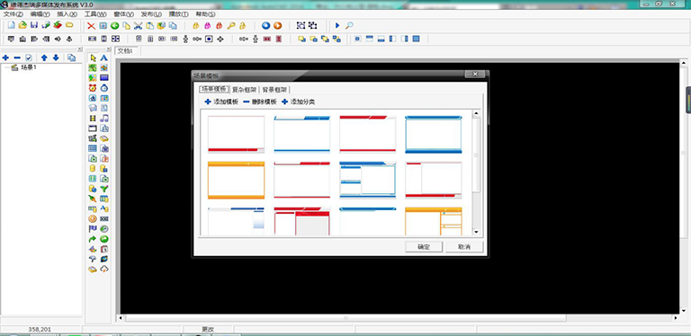 系統(tǒng)還提供大量的場(chǎng)景模板和組件模板供節(jié)目制作使用,對(duì)于常用的播放內(nèi)容用戶(hù)可將其添加到模板庫(kù)里,下次使用時(shí)直接從模板庫(kù)里導(dǎo)出來(lái)。